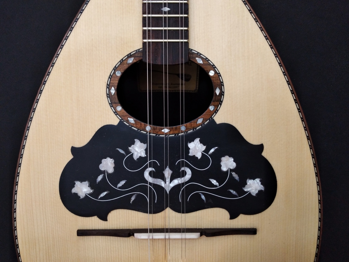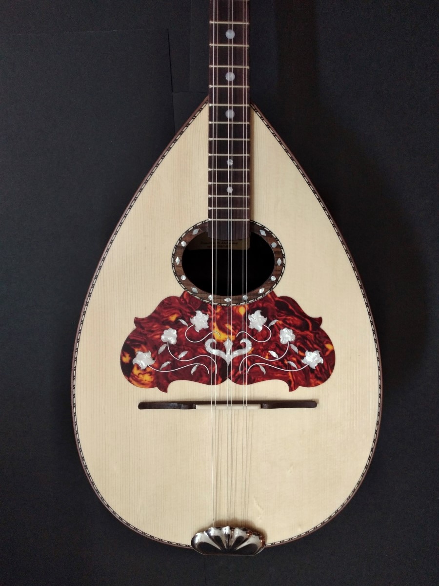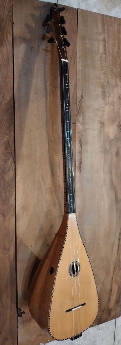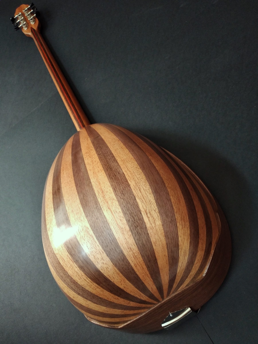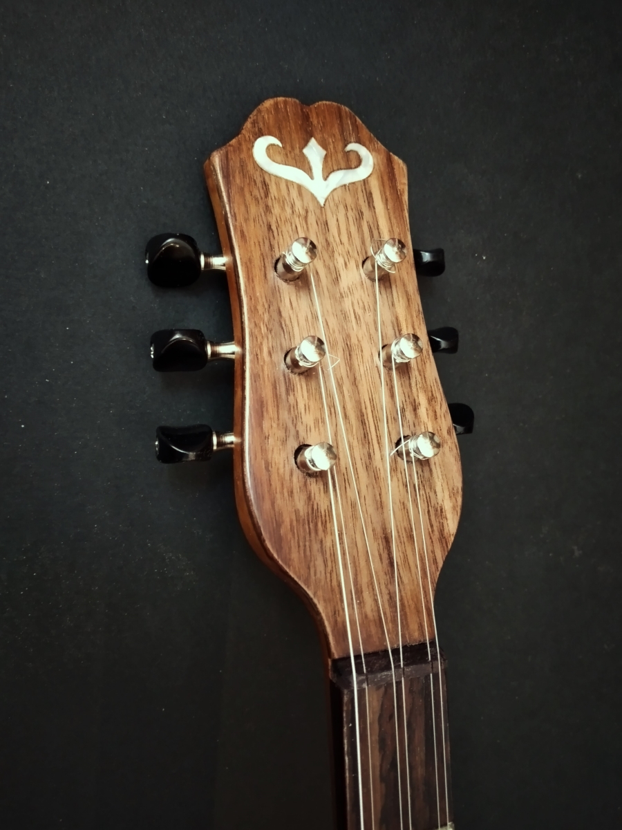 Μήκος χορδής: 66 cm, σκάφος: καρυδιά-αφρικανικό μαόνι, μπράτσο: αφρικανικό μαόνι με κόντρες βέγκε-παντούκ, καπάκι: έλατο, ταστιέρα και καβαλάρης: παλίσανδρος, επένδυση καράολου: καρυδιά, πεναριά: ασετόπαστα.