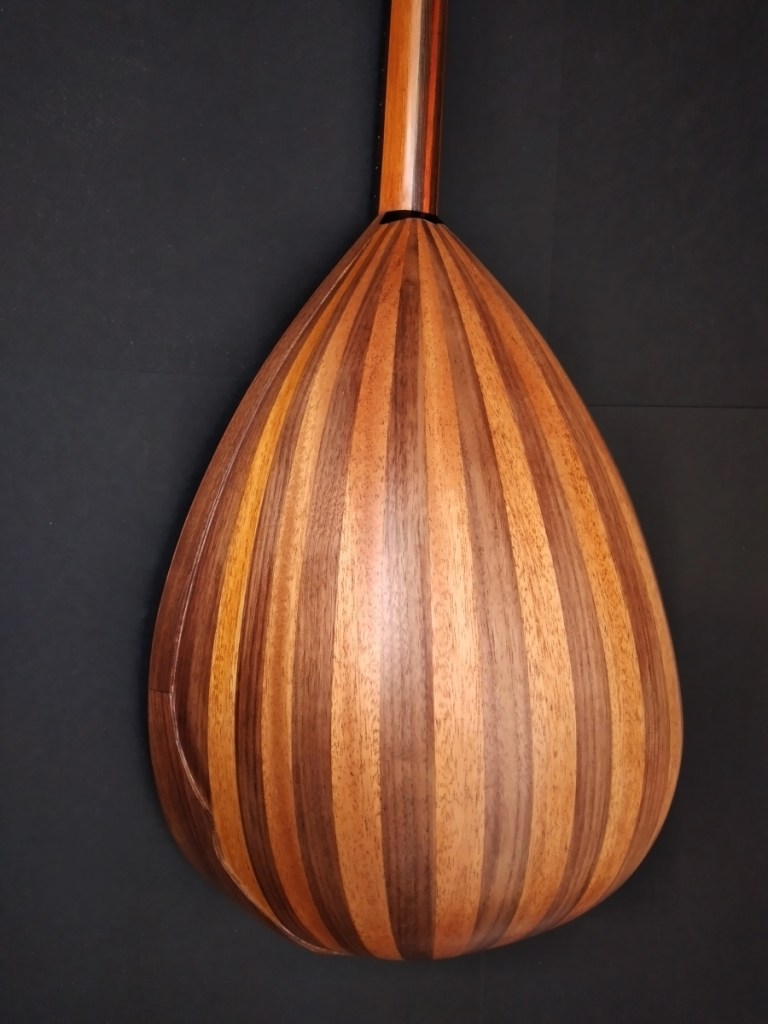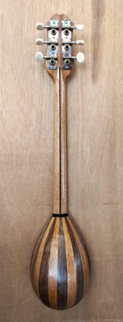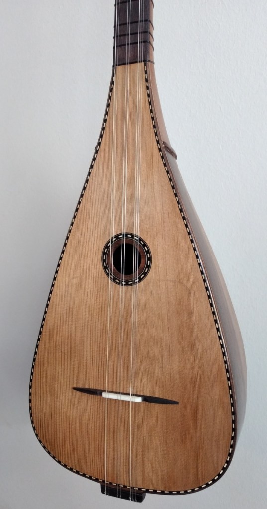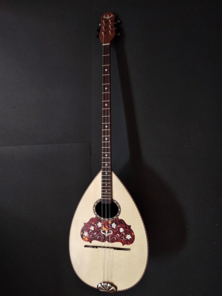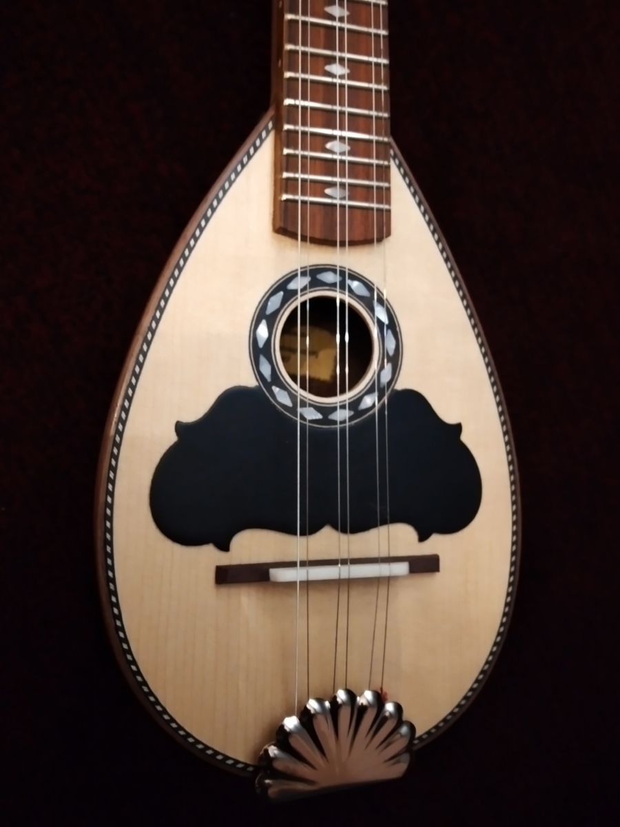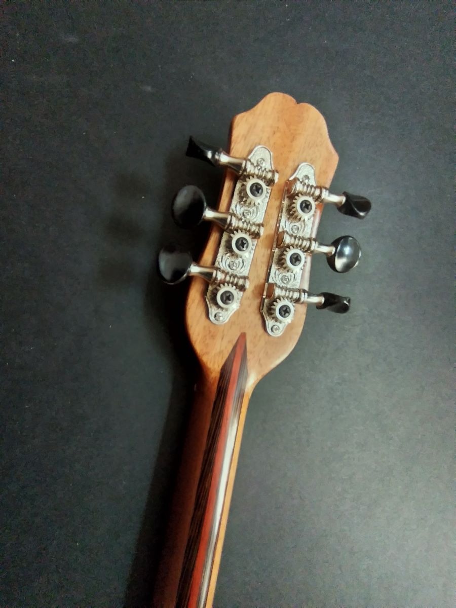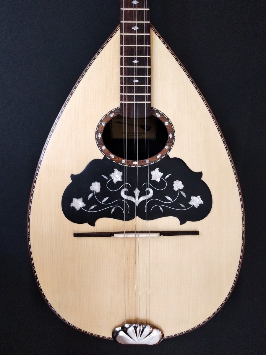Μήκος χορδής: 66 cm, σκάφος: καρυδιά-αφρικανικό μαόνι, μπράτσο: αφρικανικό μαόνι με κόντρες βέγκε-παντούκ, καπάκι: έλατο, ταστιέρα και καβαλάρης: παλίσανδρος, επένδυση καράολου: καρυδιά, πεναριά: ασετόπαστα.