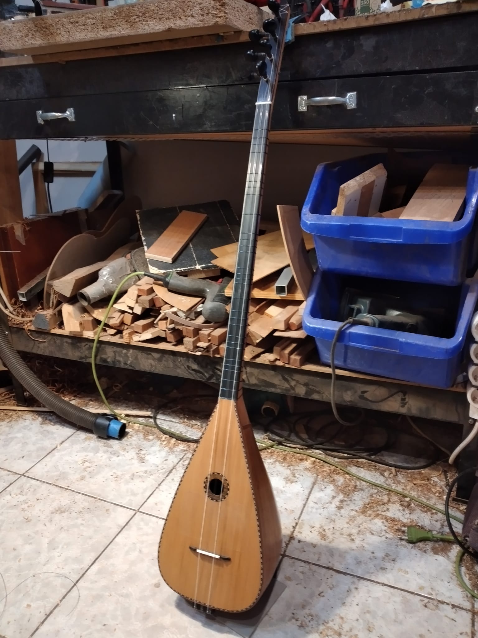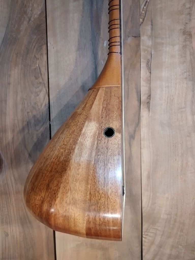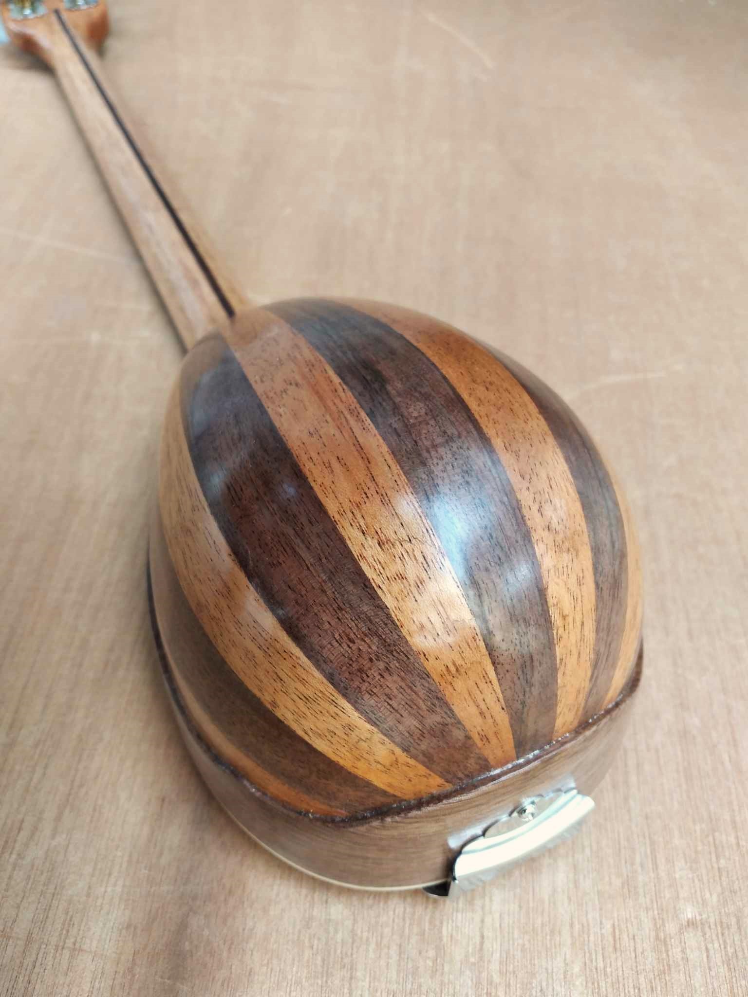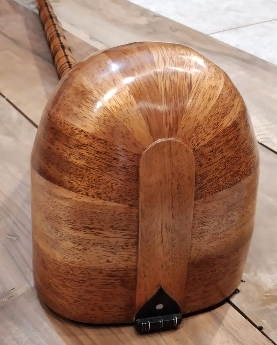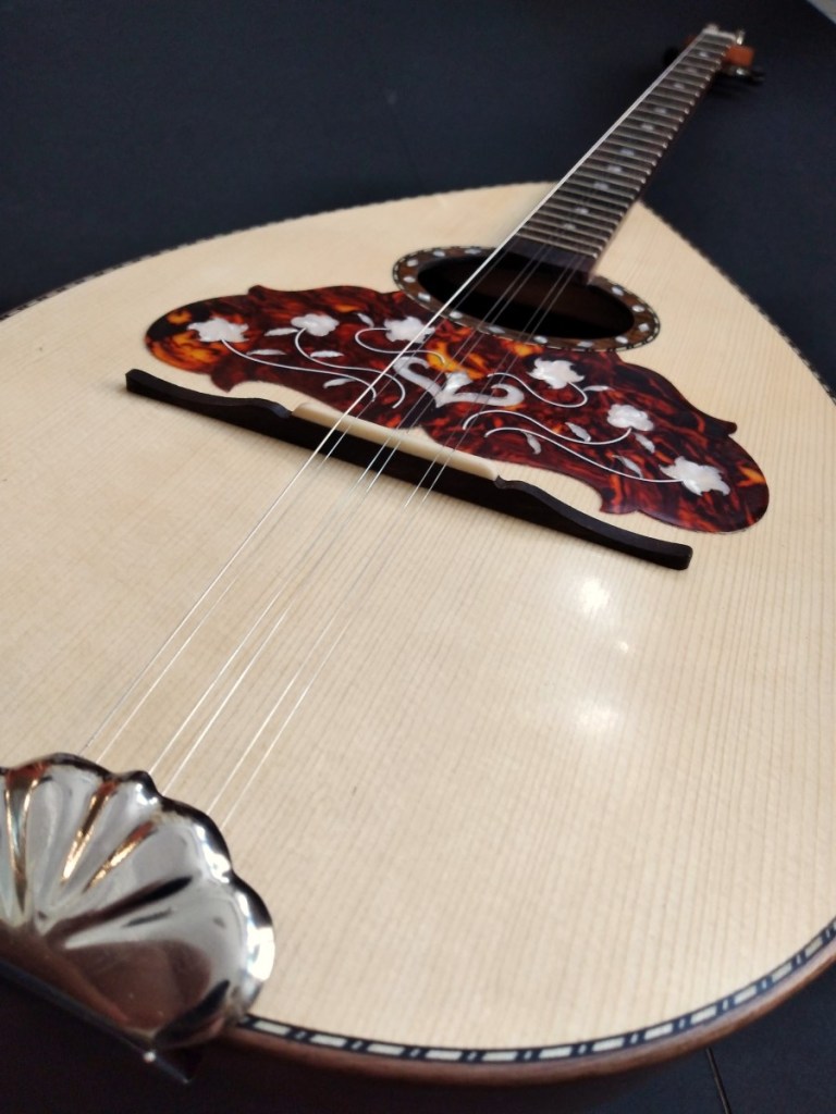Μήκος χορδής: 66 cm, σκάφος: καρυδιά-αφρικανικό μαόνι, μπράτσο: αφρικανικό μαόνι με κόντρες βέγκε-παντούκ, καπάκι: έλατο, ταστιέρα και καβαλάρης: παλίσανδρος, επένδυση καράολου: καρυδιά, πεναριά: ασετόπαστα.