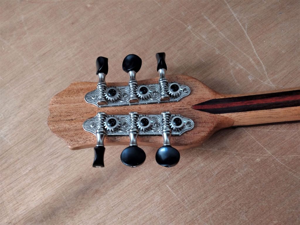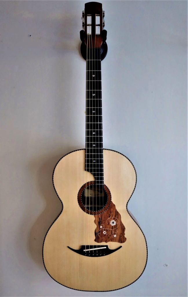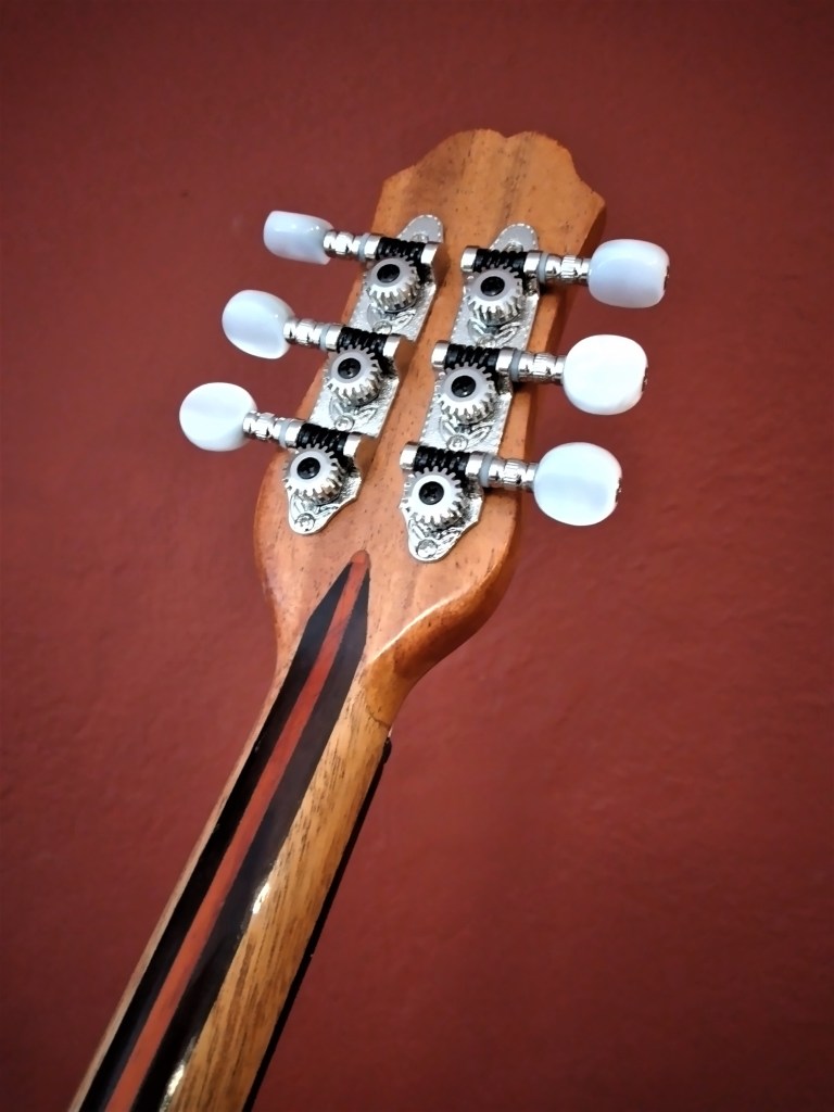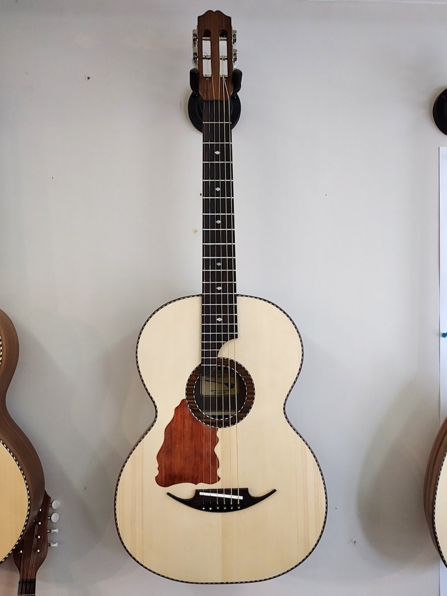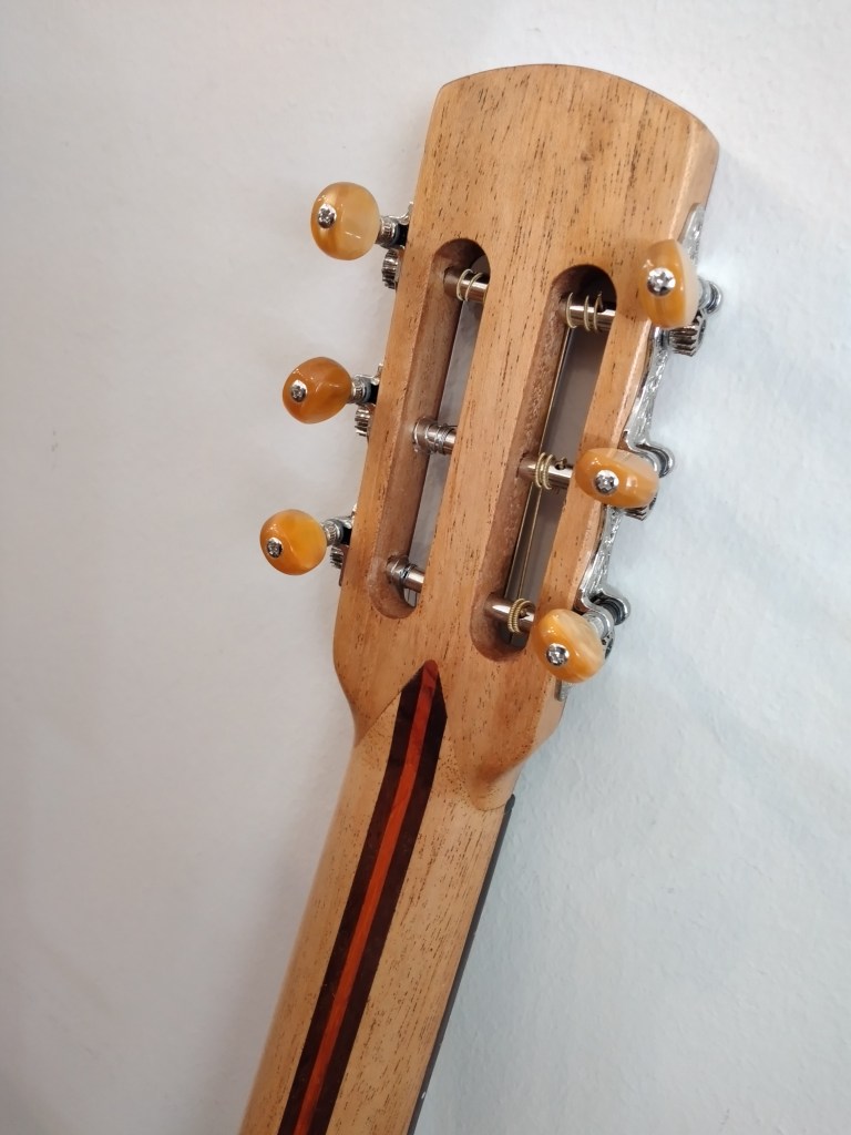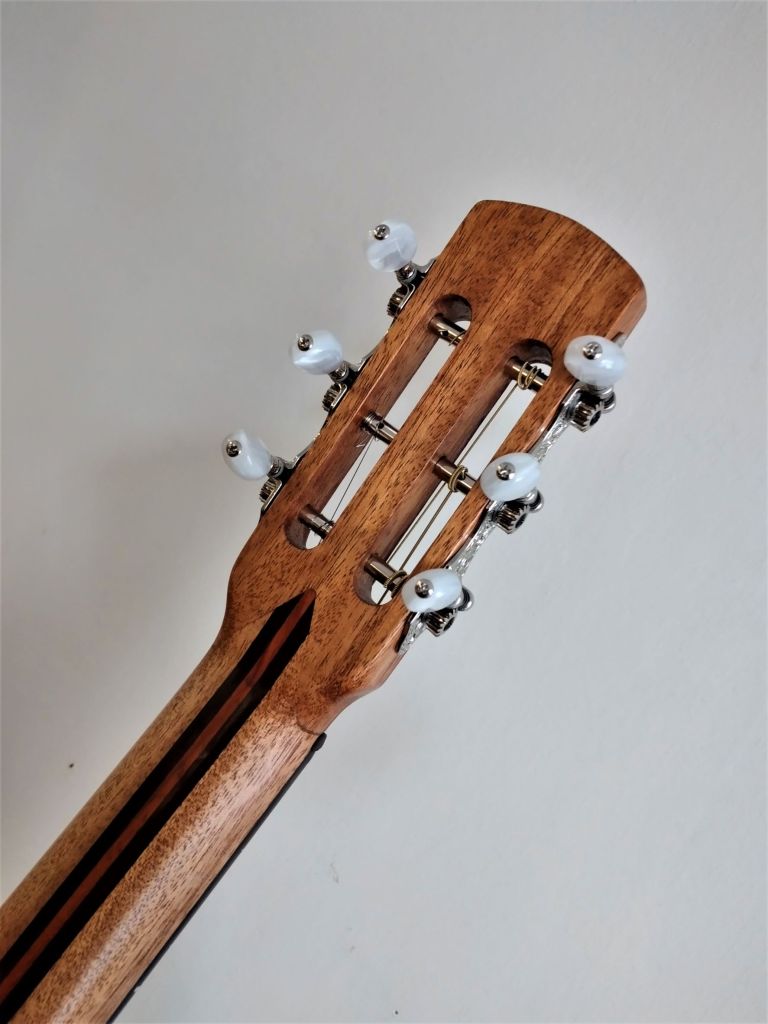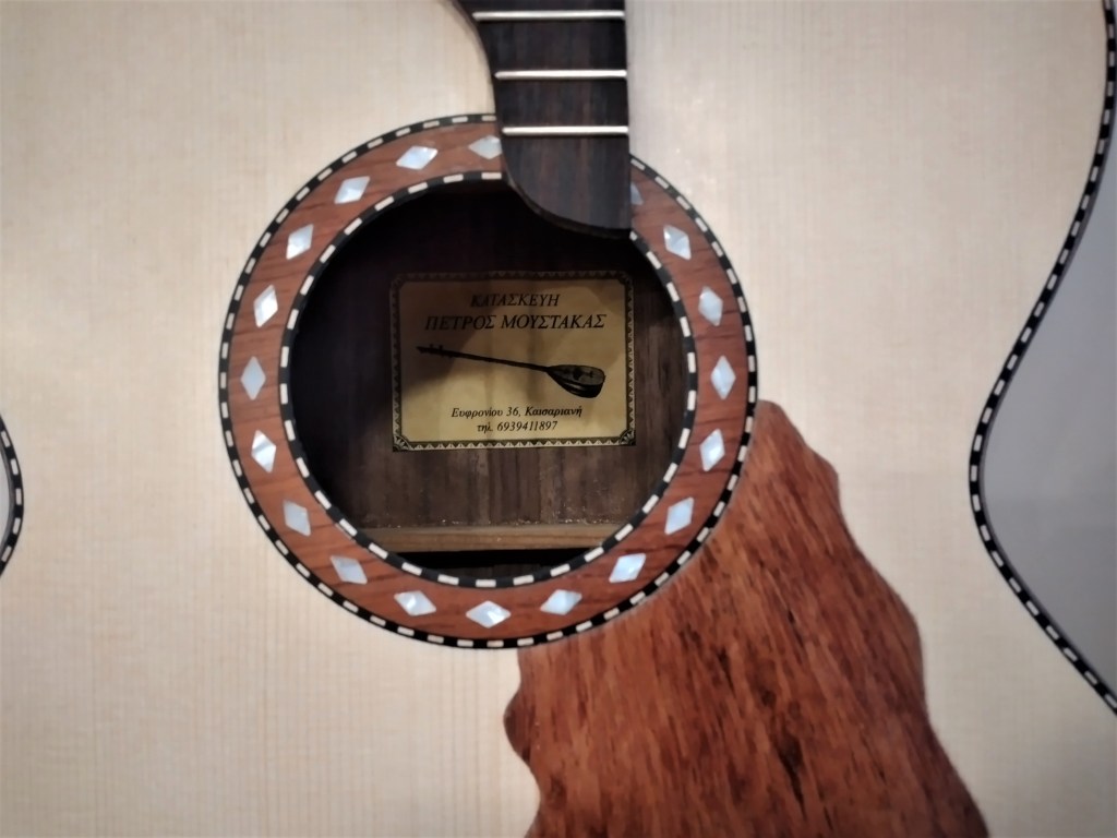 Σκάφος: καρυδιά, μπράτσο: αφρικανικό μαόνι με κόντρες παλίσανδρο & παντούκ, καπάκι: έλατο, ταστιέρα και καβαλάρης: παλίσανδρος, επένδυση καράολου & πεναριά: τριανταφυλλιά (bubinga) κλειδιά: Grover.