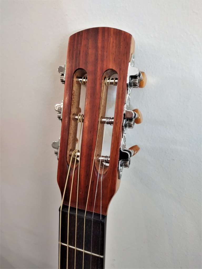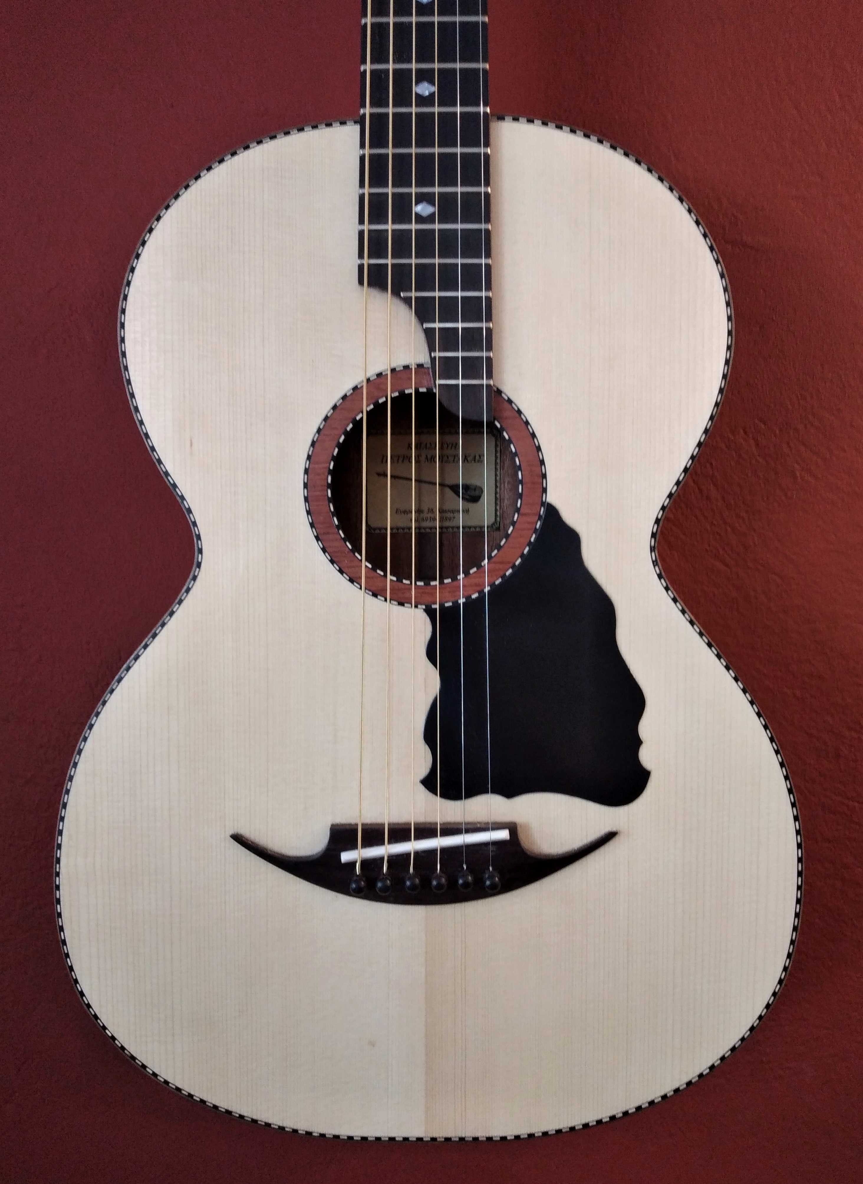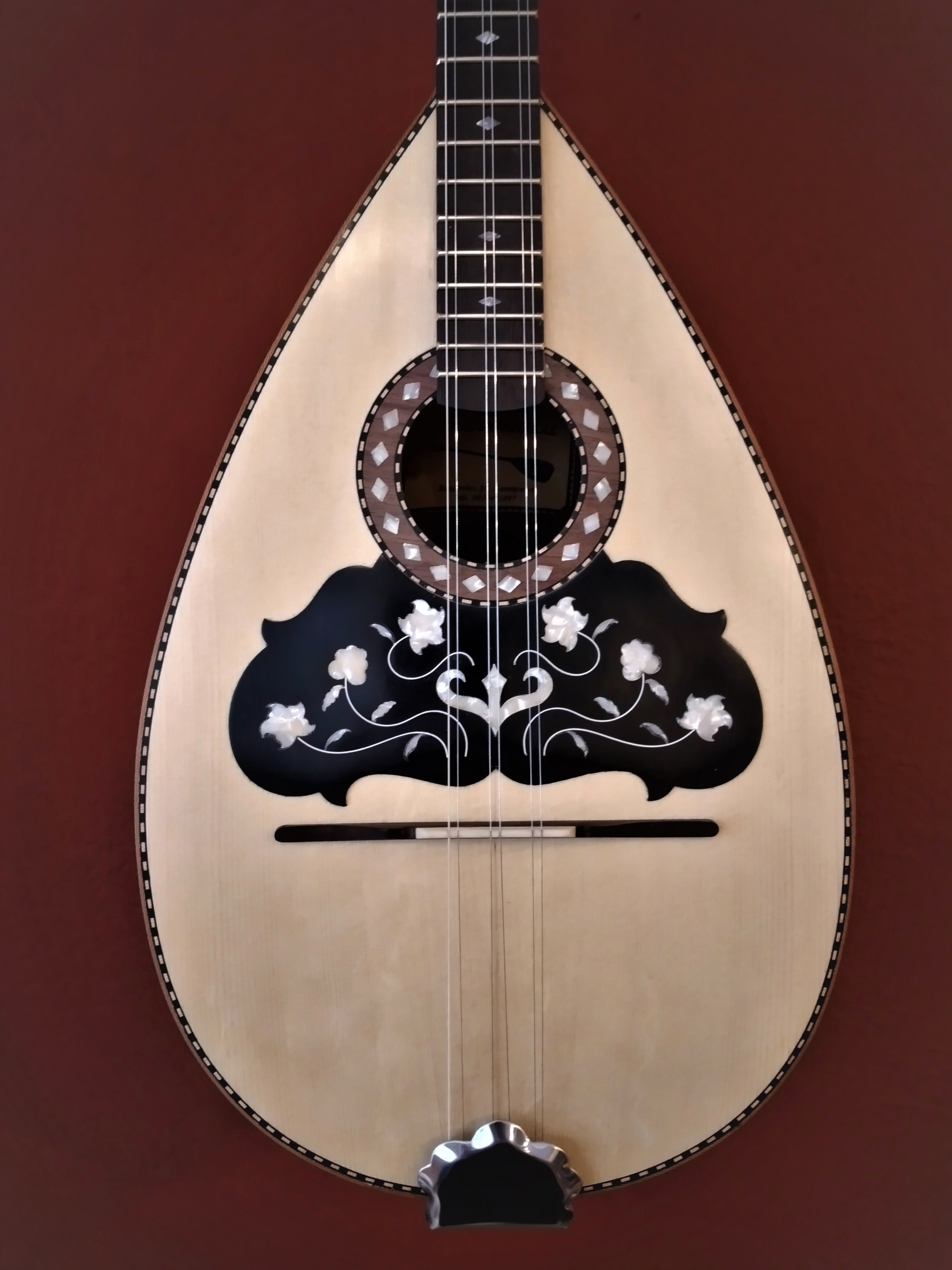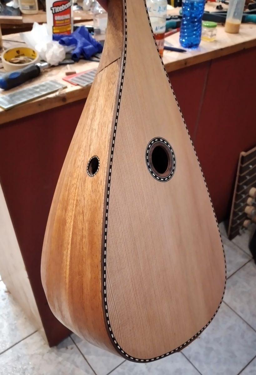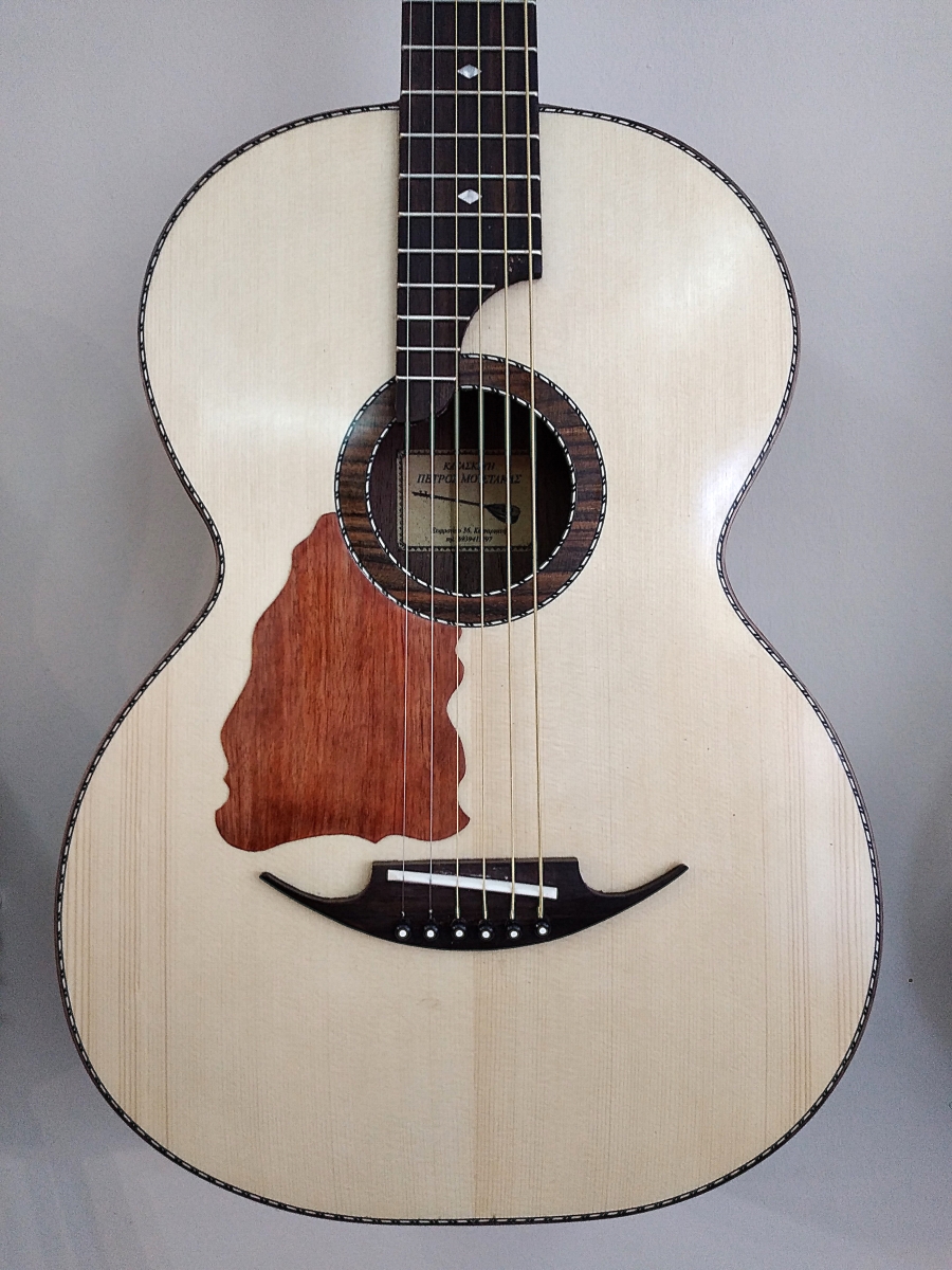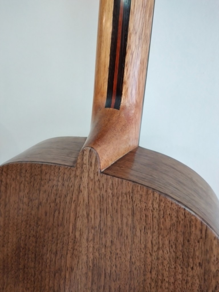 Σκάφος: καρυδιά, μπράτσο: αφρικανικό μαόνι με κόντρες παλίσανδρο & παντούκ, καπάκι: έλατο, ταστιέρα και καβαλάρης: παλίσανδρος, επένδυση καράολου & πεναριά: τριανταφυλλιά (bubinga) κλειδιά: Grover.