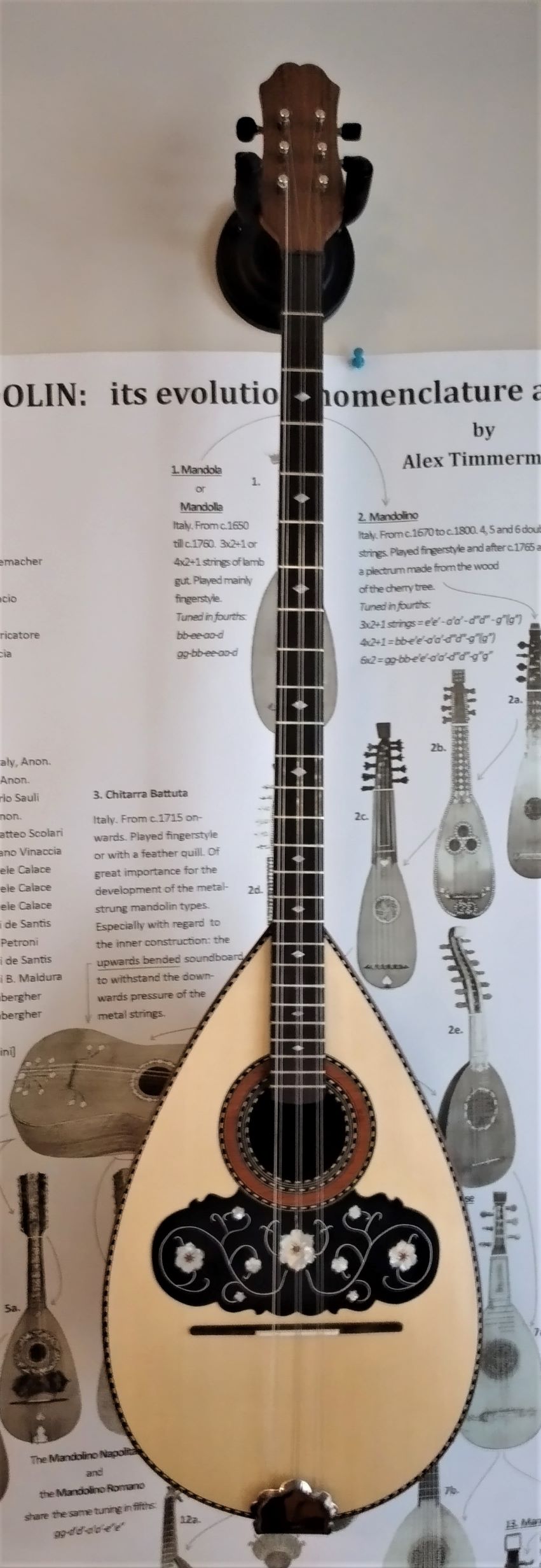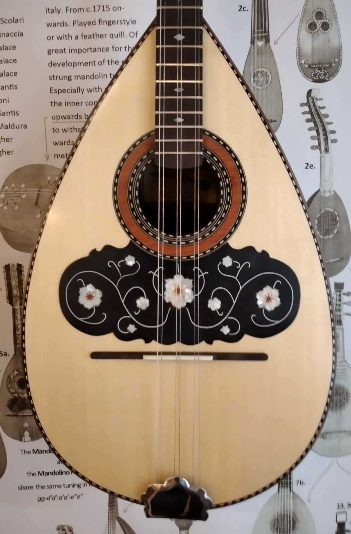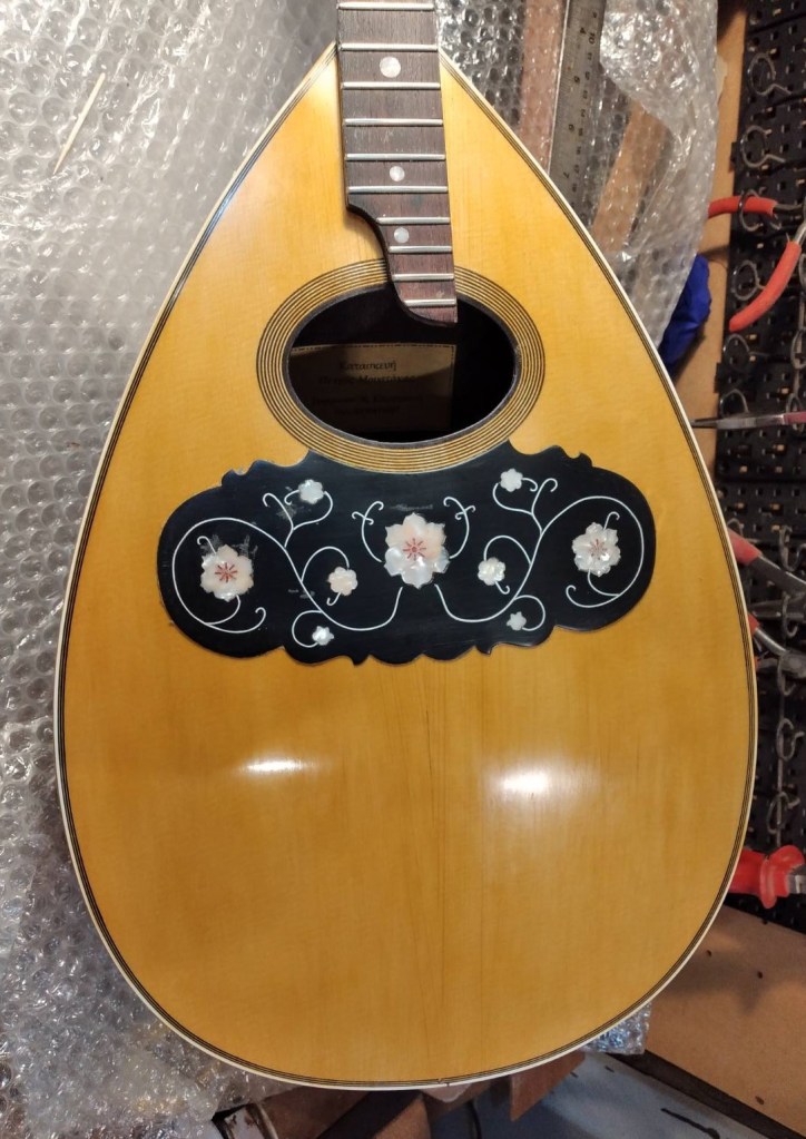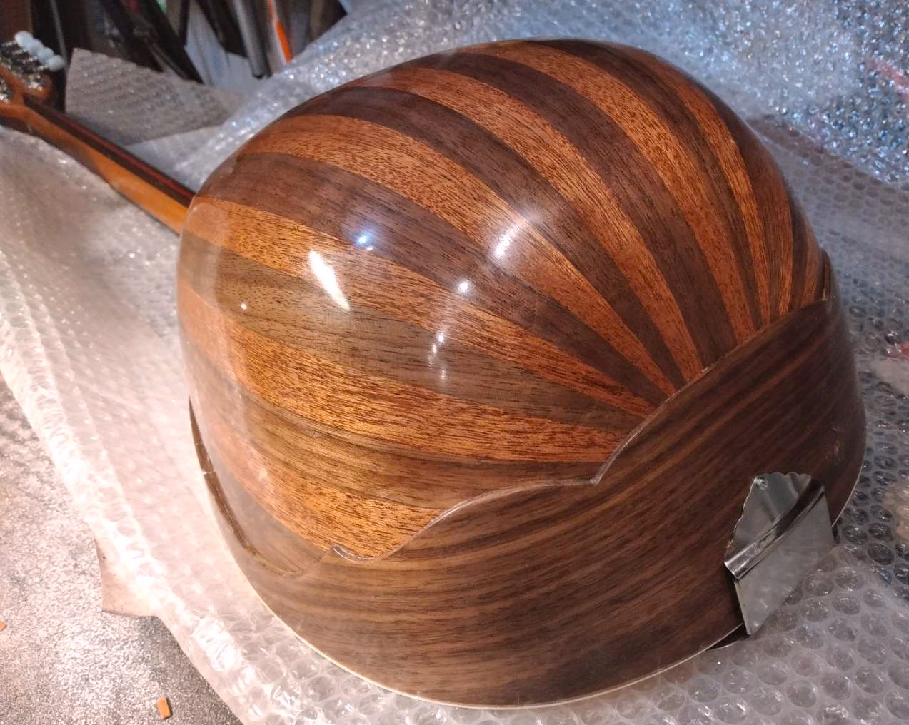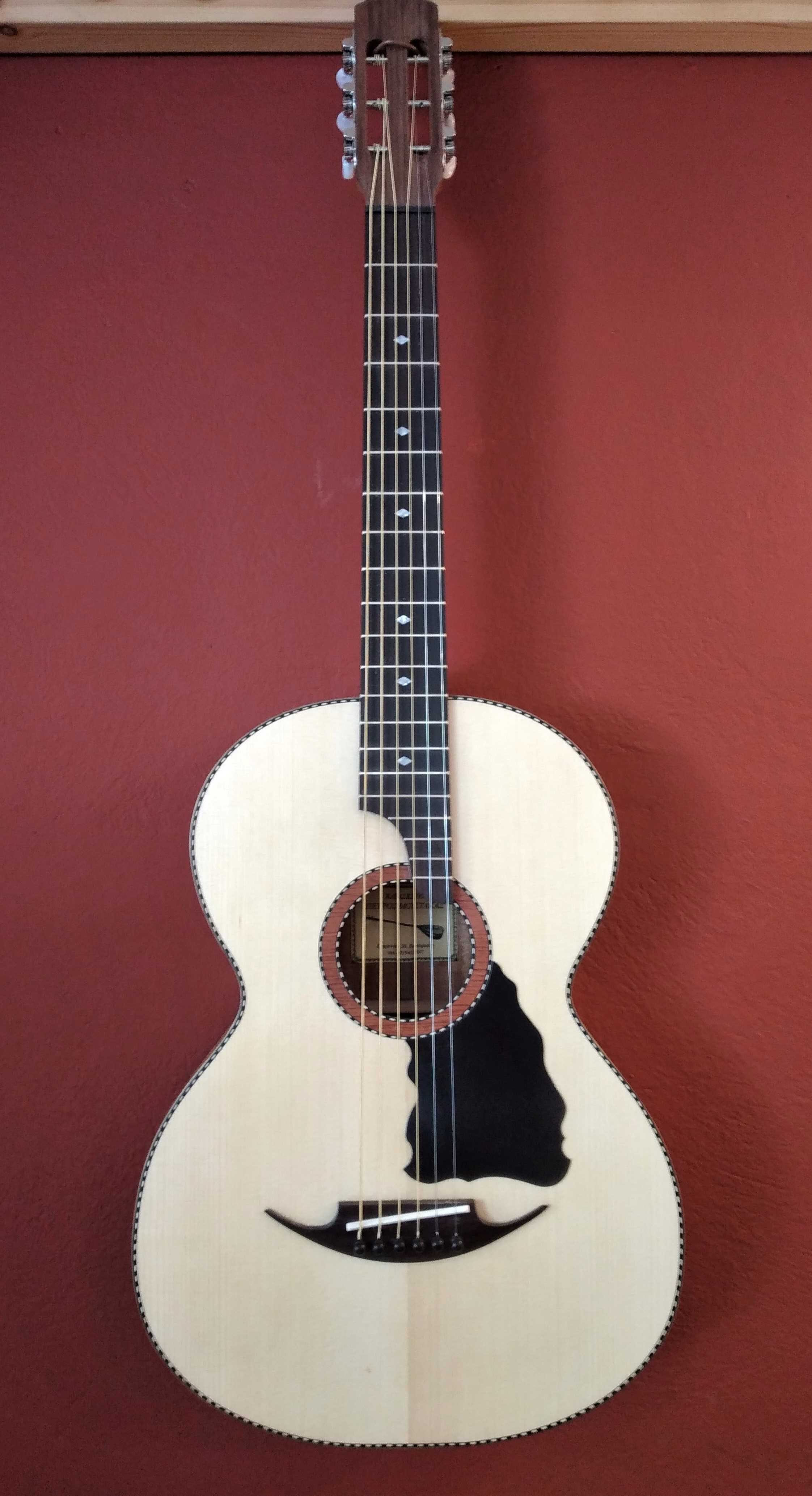 Σκάφος: καρυδιά, μπράτσο: αφρικανικό μαόνι με κόντρες παλίσανδρο & παντούκ, καπάκι: έλατο, ταστιέρα και καβαλάρης: παλίσανδρος, επένδυση καράολου & πεναριά: τριανταφυλλιά (bubinga) κλειδιά: Grover.