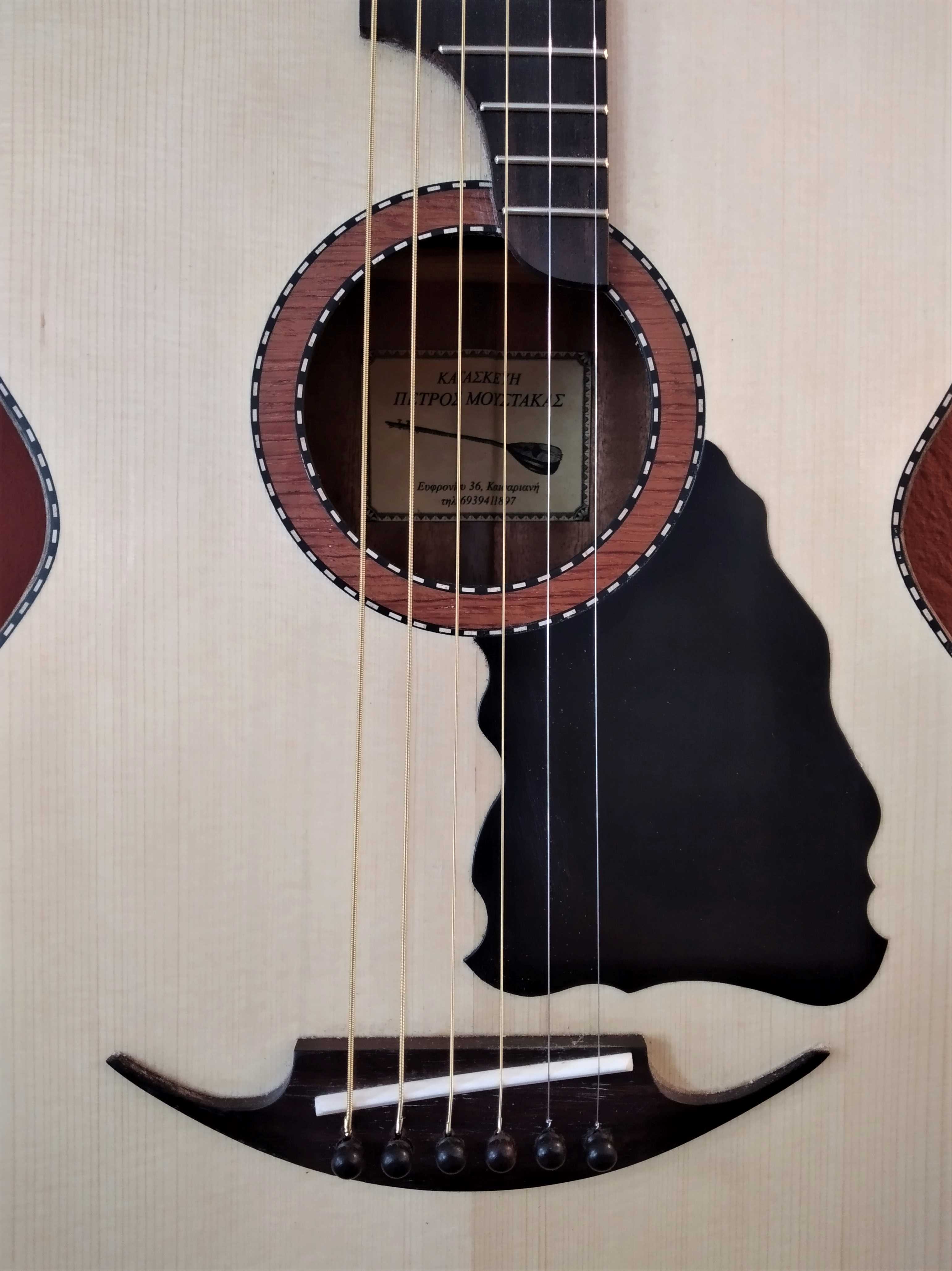 Το ηχητικό δείγμα προέρχεται από τη μεγαλύτερη σε μέγεθος κιθάρα, με τον ορθογώνιο καβαλάρη. Η φόρμα της είναι βασισμένη σε μοντέλο των αδερφών Παναγή, της δεκαετίας του 1960.