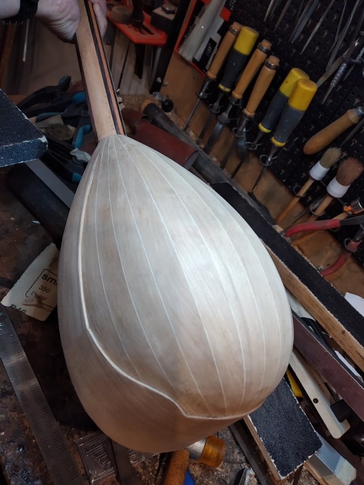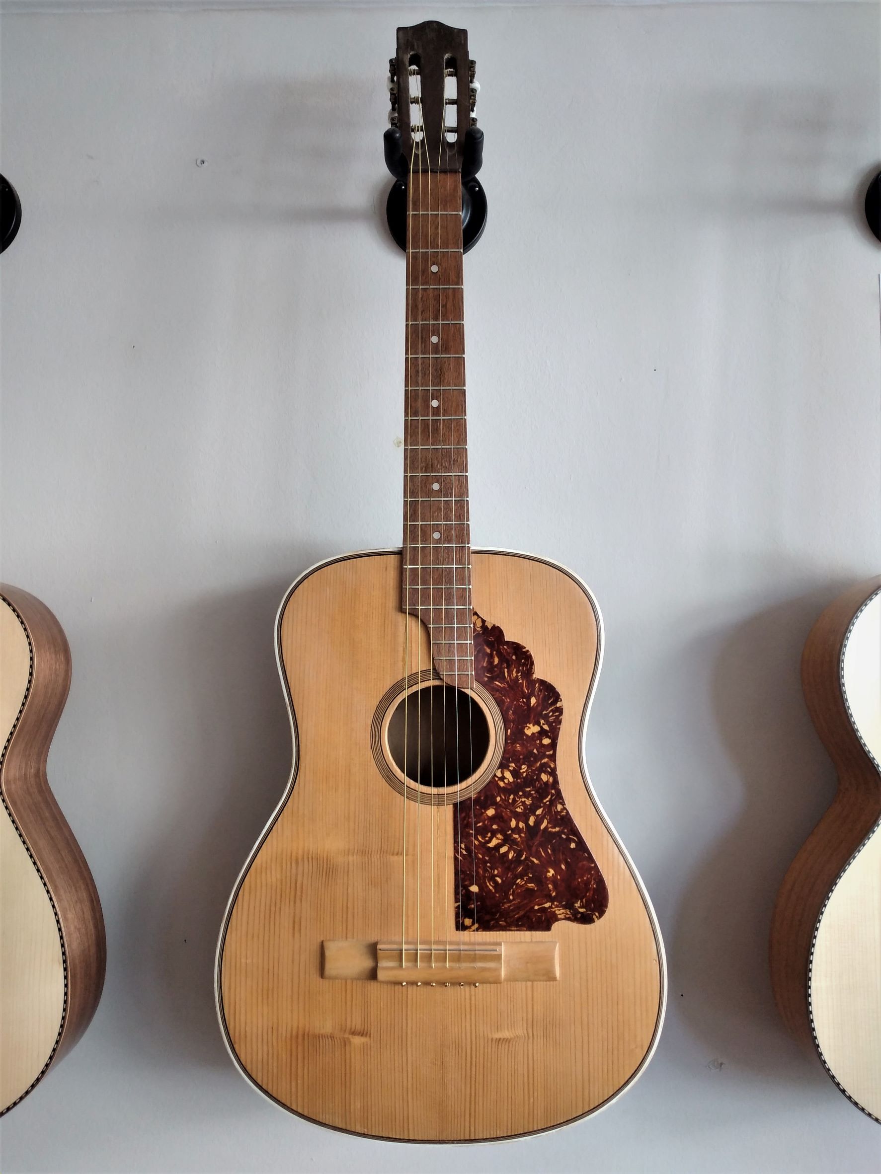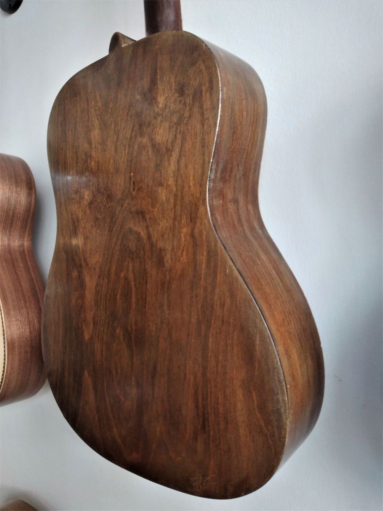 Σκάφος: καρυδιά. Mπράτσο: αφρικανικό μαόνι με κόντρα παντούκ. Καπάκι: έλατο. Ταστιέρα και καβαλάρης: παλίσανδρος. Επένδυση καράολου: τριανταφυλλιά (bubinga). Πεναριά: καρυδιά. Κλειδιά: Grover. Μήκος χορδής: 33,8cm