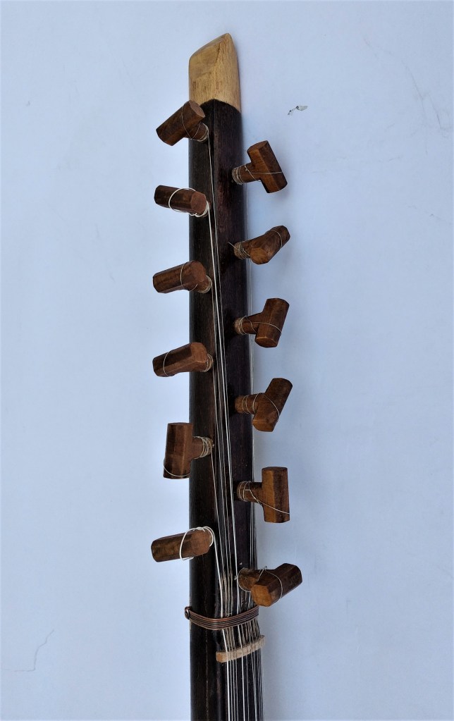 Σκάφος: σαπέλι, μπράτσο: μαόνι, καπάκι: κέδρος, ταστιέρα: έβενος, επένδυση καράολου: παλίσανδρος, κλειδιά: παλίσανδρος, δεσμοί: νάιλον.