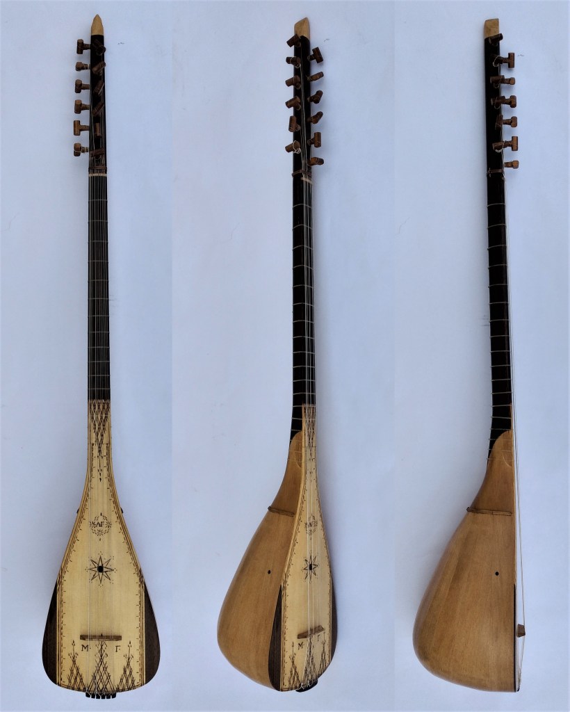 Η τεχνική κατασκευής και η γενική μορφή του συγκεκριμένου οργάνου βασίστηκαν στον ταμπουρά του Μακρυγιάννη (περ. 1835), με αρκετές όμως τροποποιήσεις (μεγαλύτερο μέγεθος, μικρότερος τάκος, ξύλινα φιλέτα, ταστιέρα από σκληρό ξύλο, νάιλον δεσμοί κτλ).