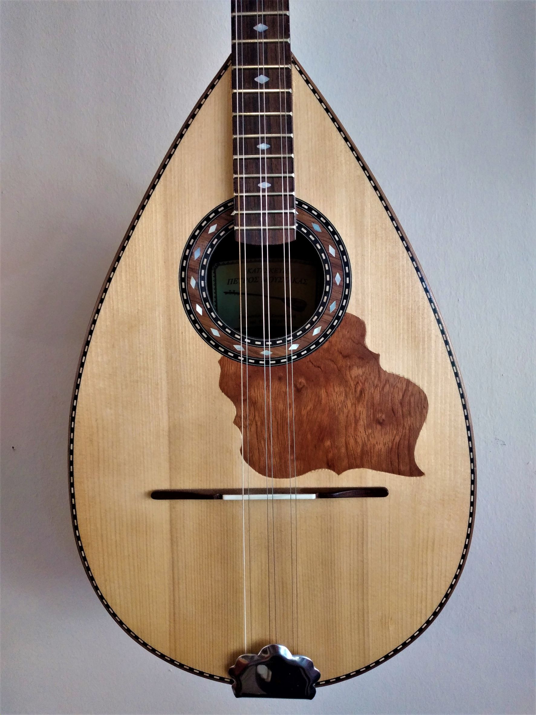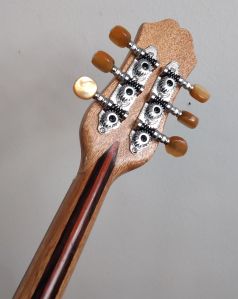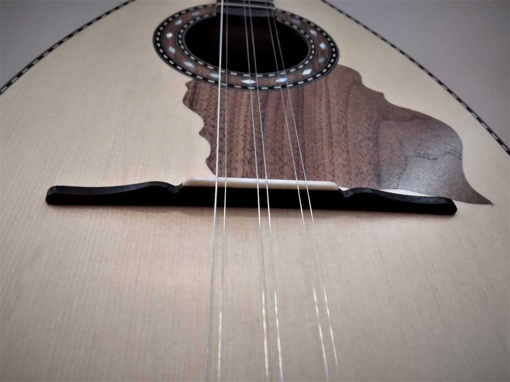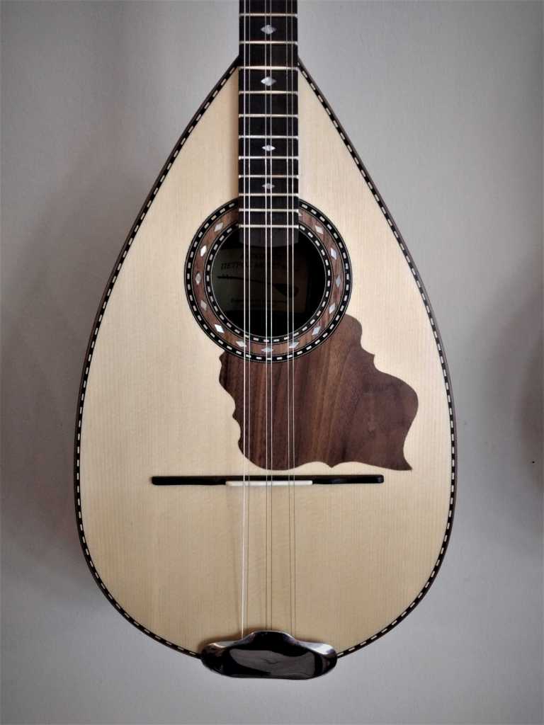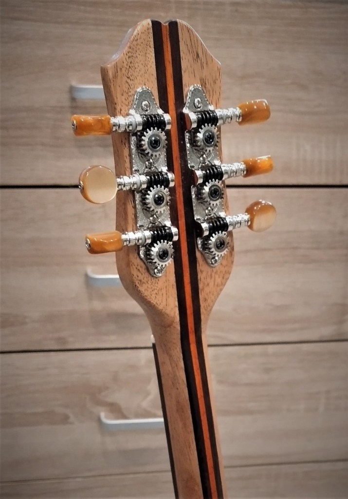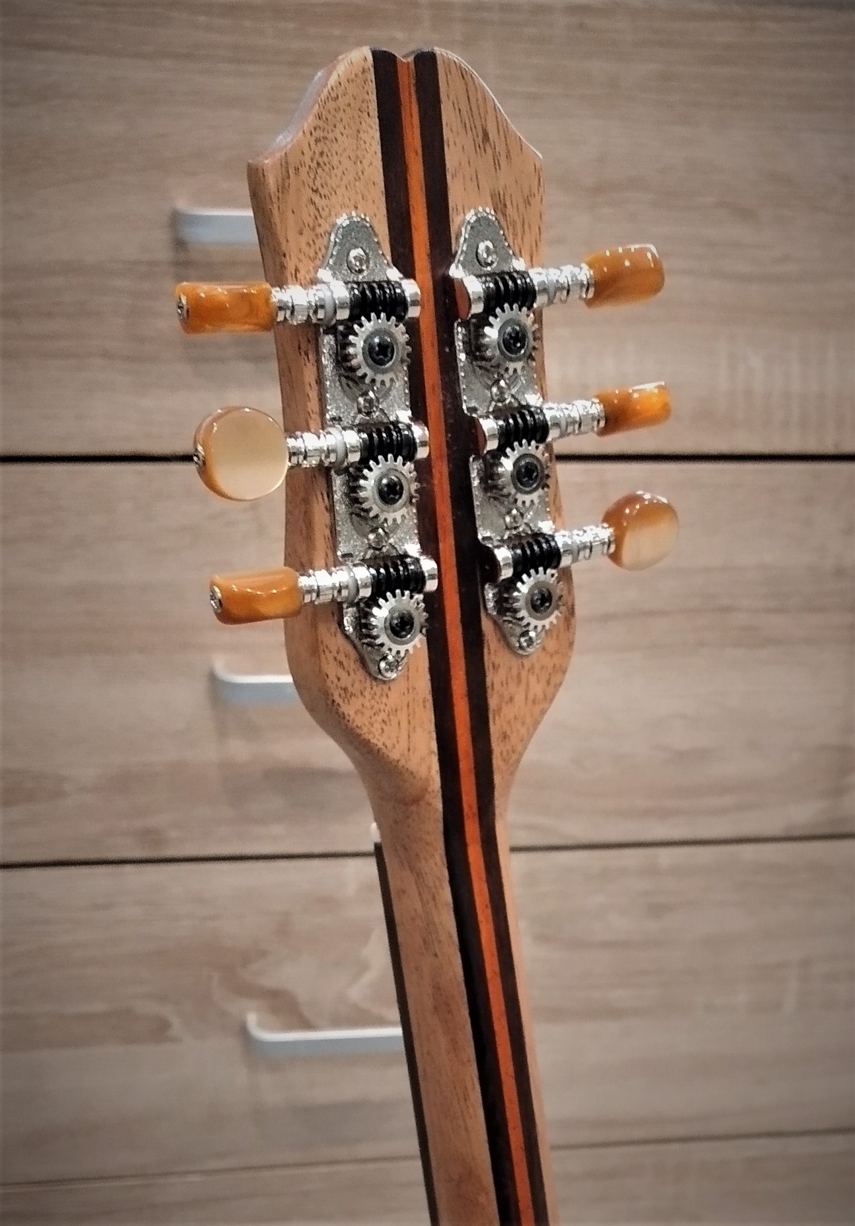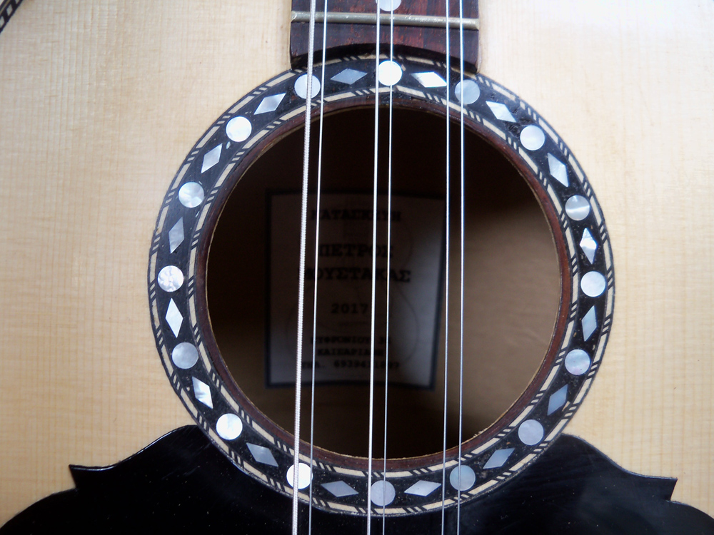 Μήκος χορδής: 67 cm, σκάφος: καρυδιά-αφρικανικό μαόνι, μπράτσο: αφρικανικό μαόνι με κόντρες όβανγκολ-παντούκ, καπάκι: έλατο, ταστιέρα και καβαλάρης: παλίσανδρος, επένδυση καράολου: όβανγκολ, πεναριά: ασετόπαστα.