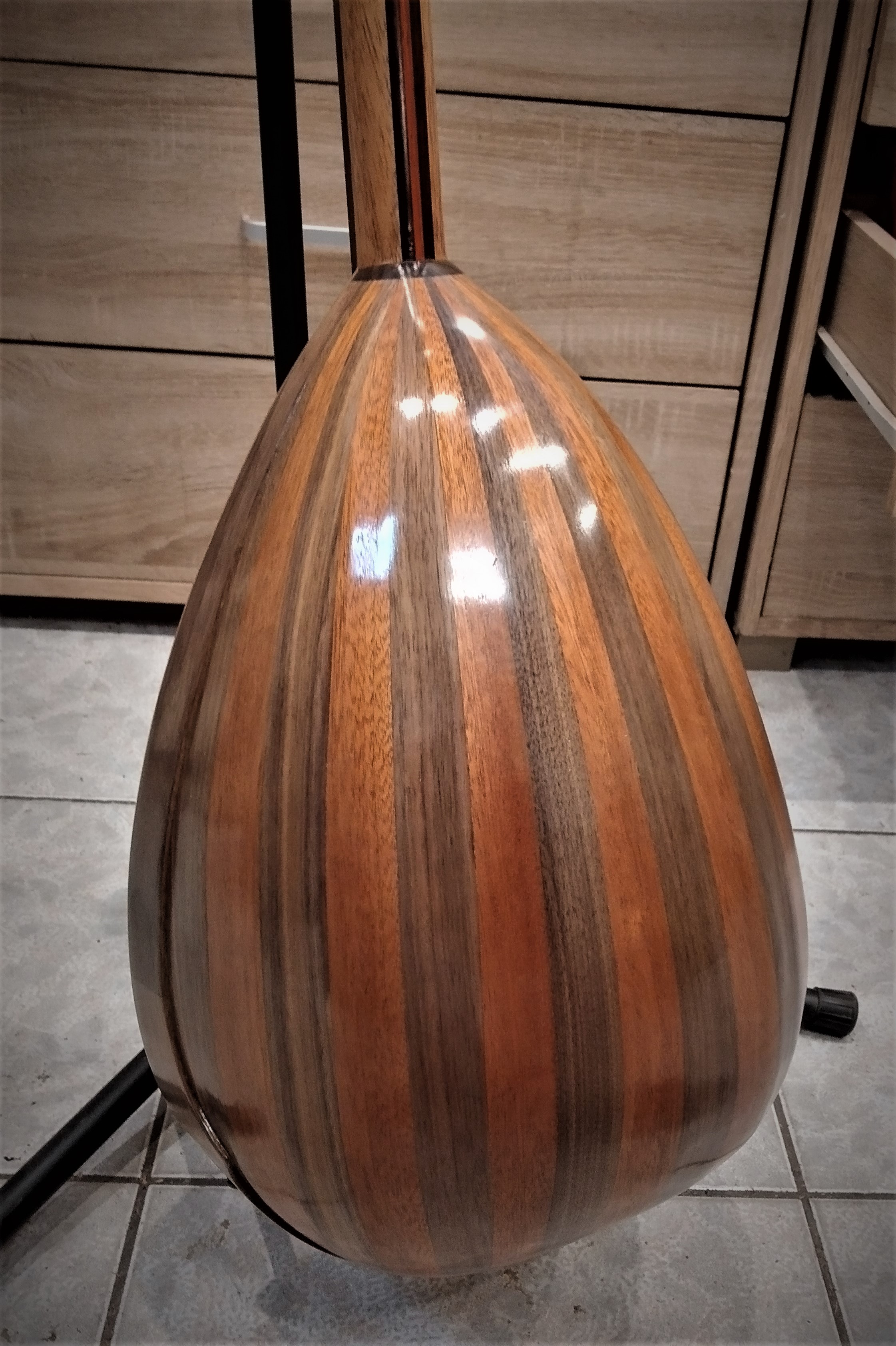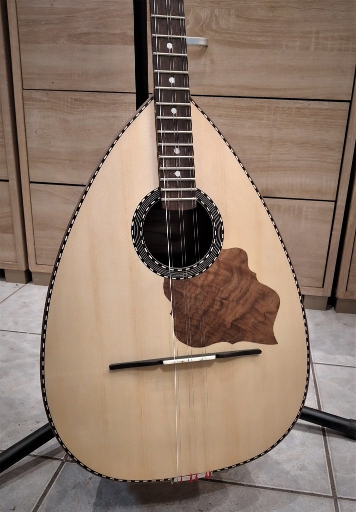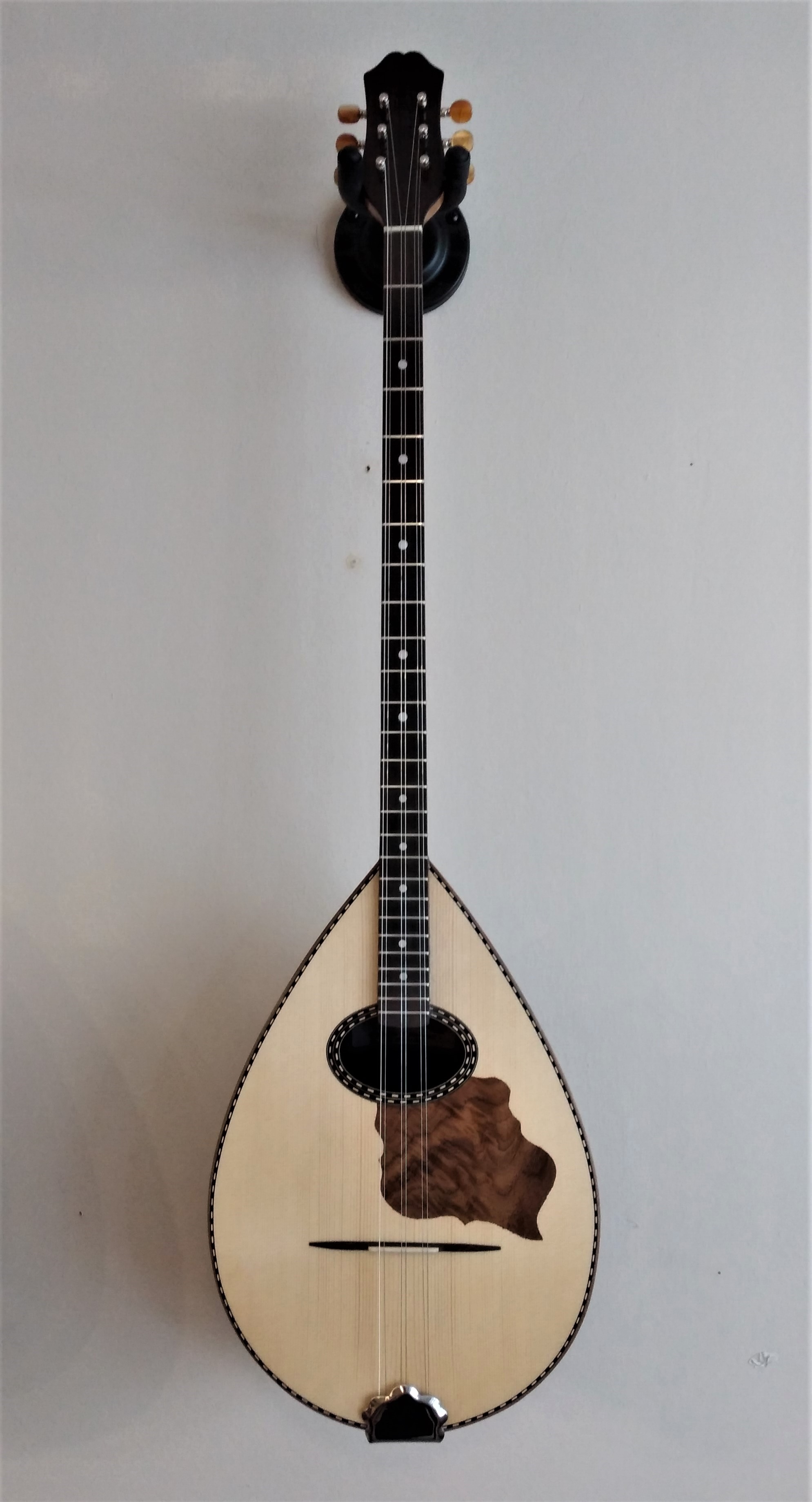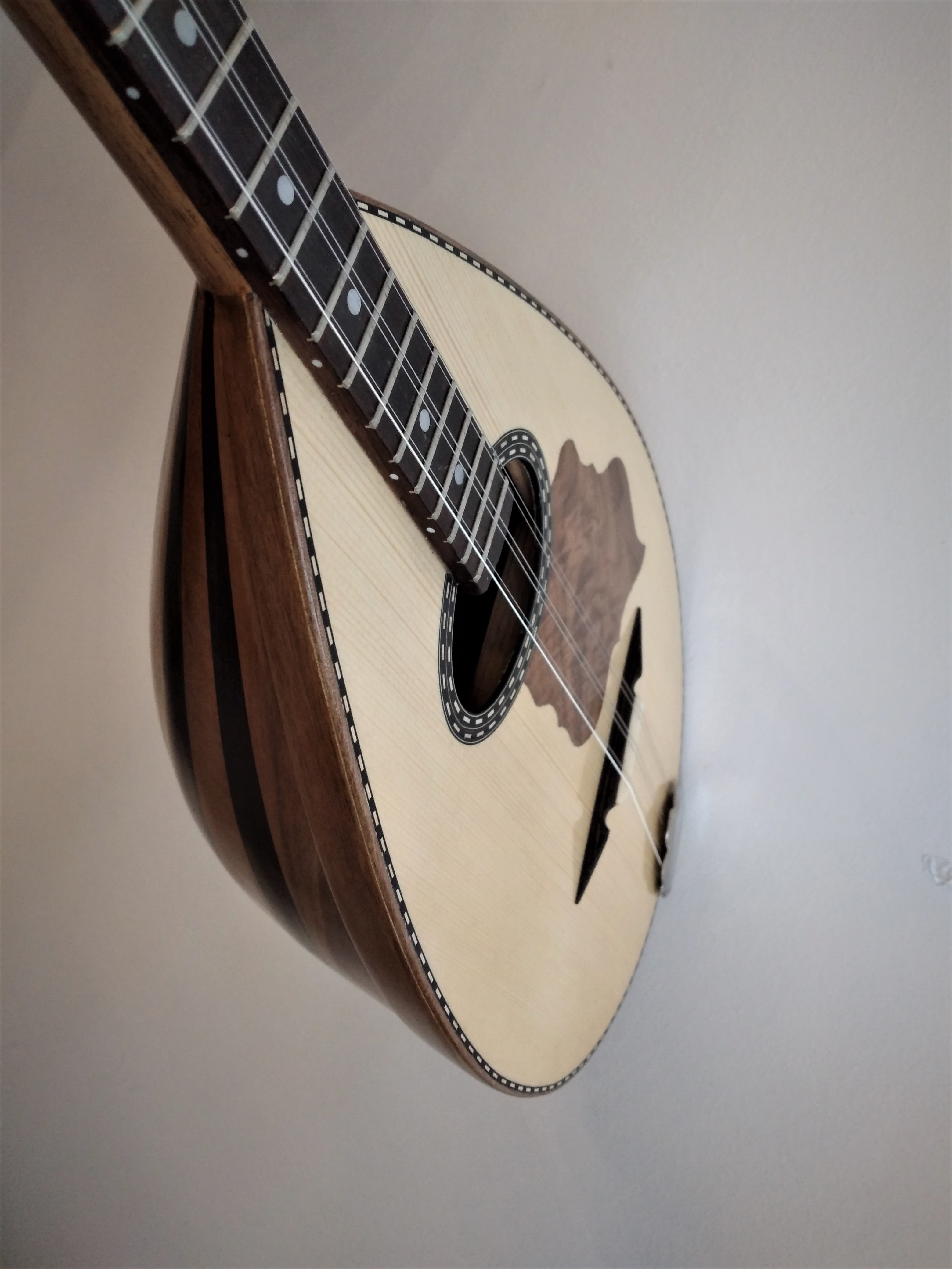 Μήκος χορδής: 67 cm, σκάφος: καρυδιά-αφρικανικό μαόνι, μπράτσο: αφρικανικό μαόνι με κόντρες όβανγκολ-παντούκ, καπάκι: έλατο, ταστιέρα και καβαλάρης: παλίσανδρος, επένδυση καράολου: όβανγκολ, πεναριά: ασετόπαστα.
