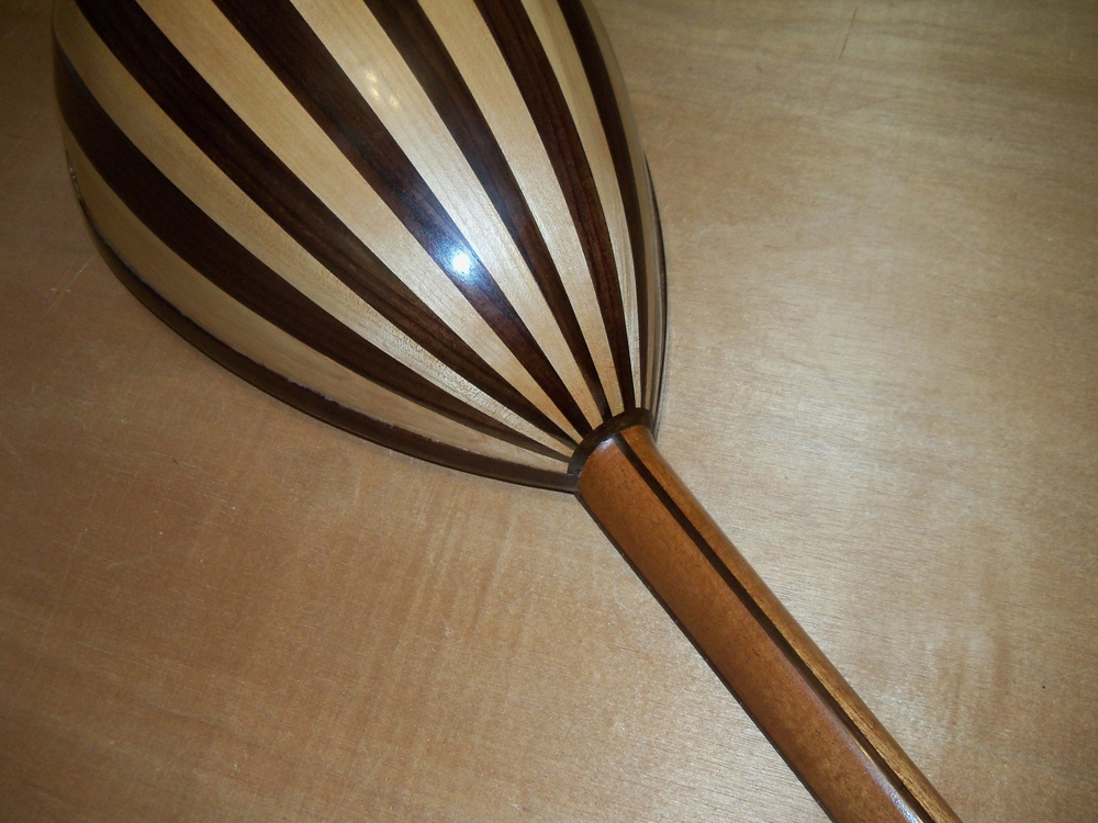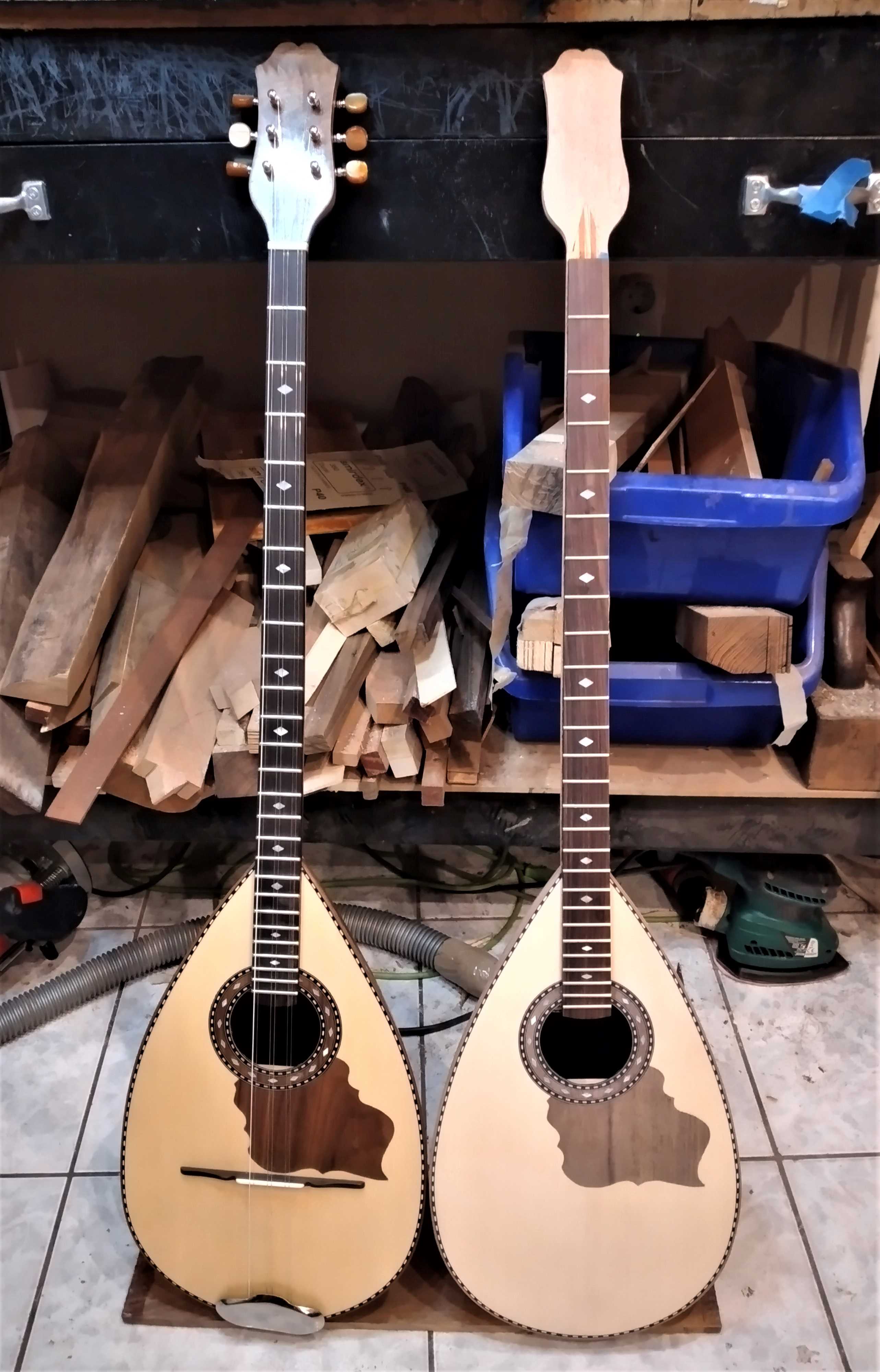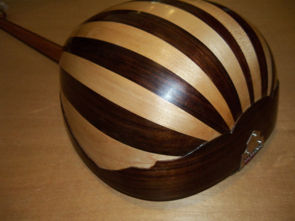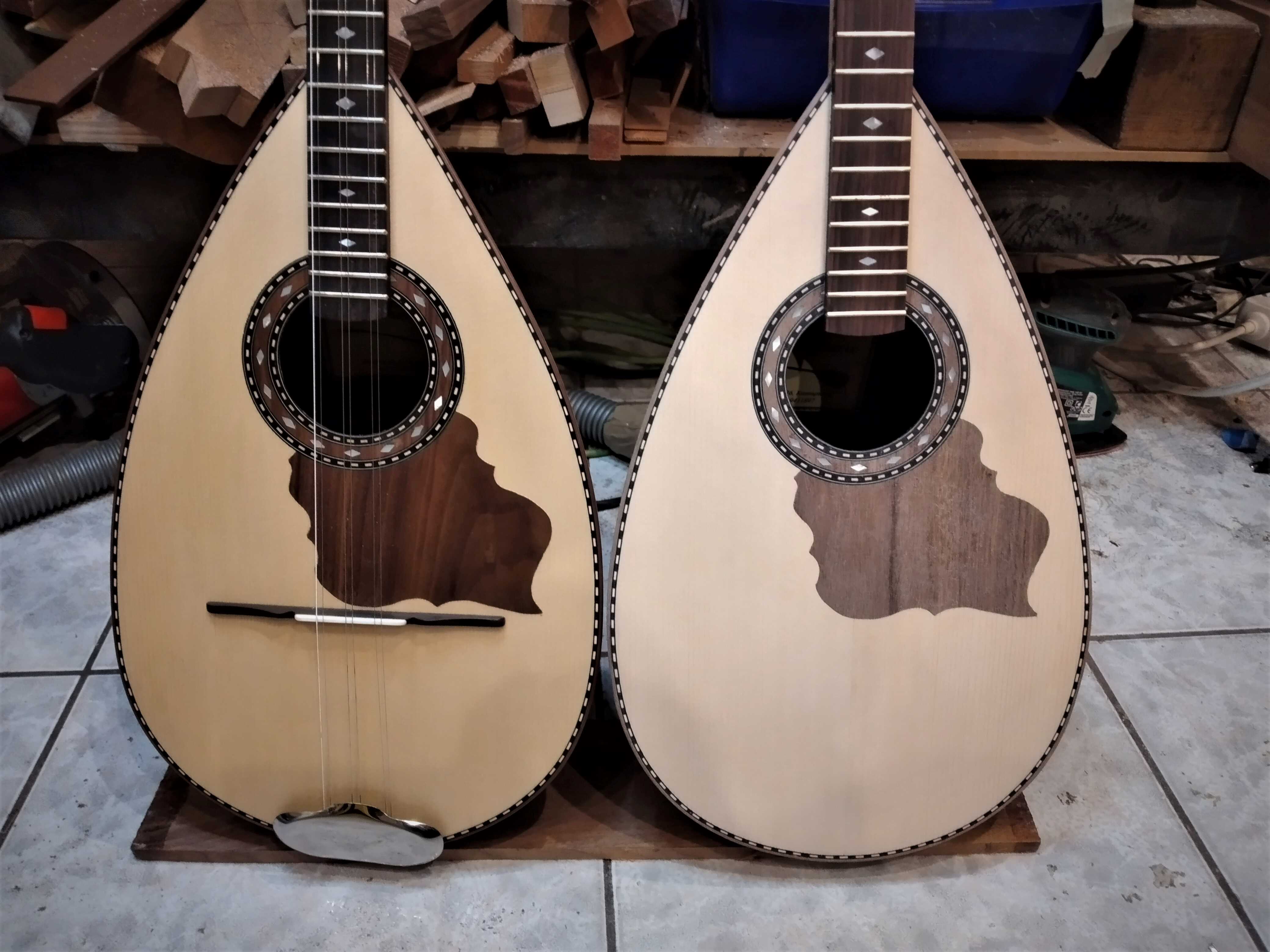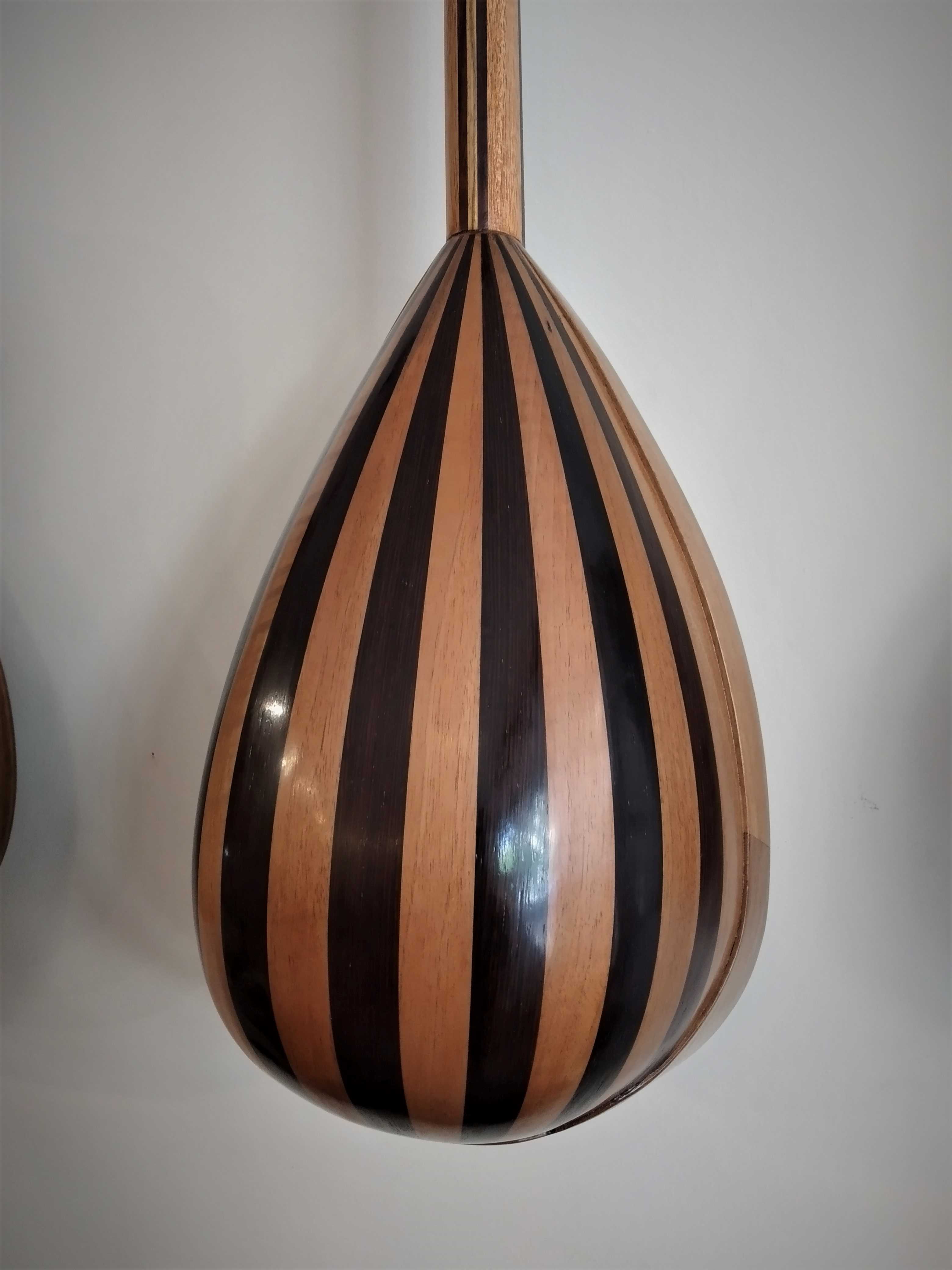 Μήκος χορδής: 67 cm, σκάφος: καρυδιά-αφρικανικό μαόνι, μπράτσο: αφρικανικό μαόνι με κόντρες όβανγκολ-παντούκ, καπάκι: έλατο, ταστιέρα και καβαλάρης: παλίσανδρος, επένδυση καράολου: όβανγκολ, πεναριά: ασετόπαστα.