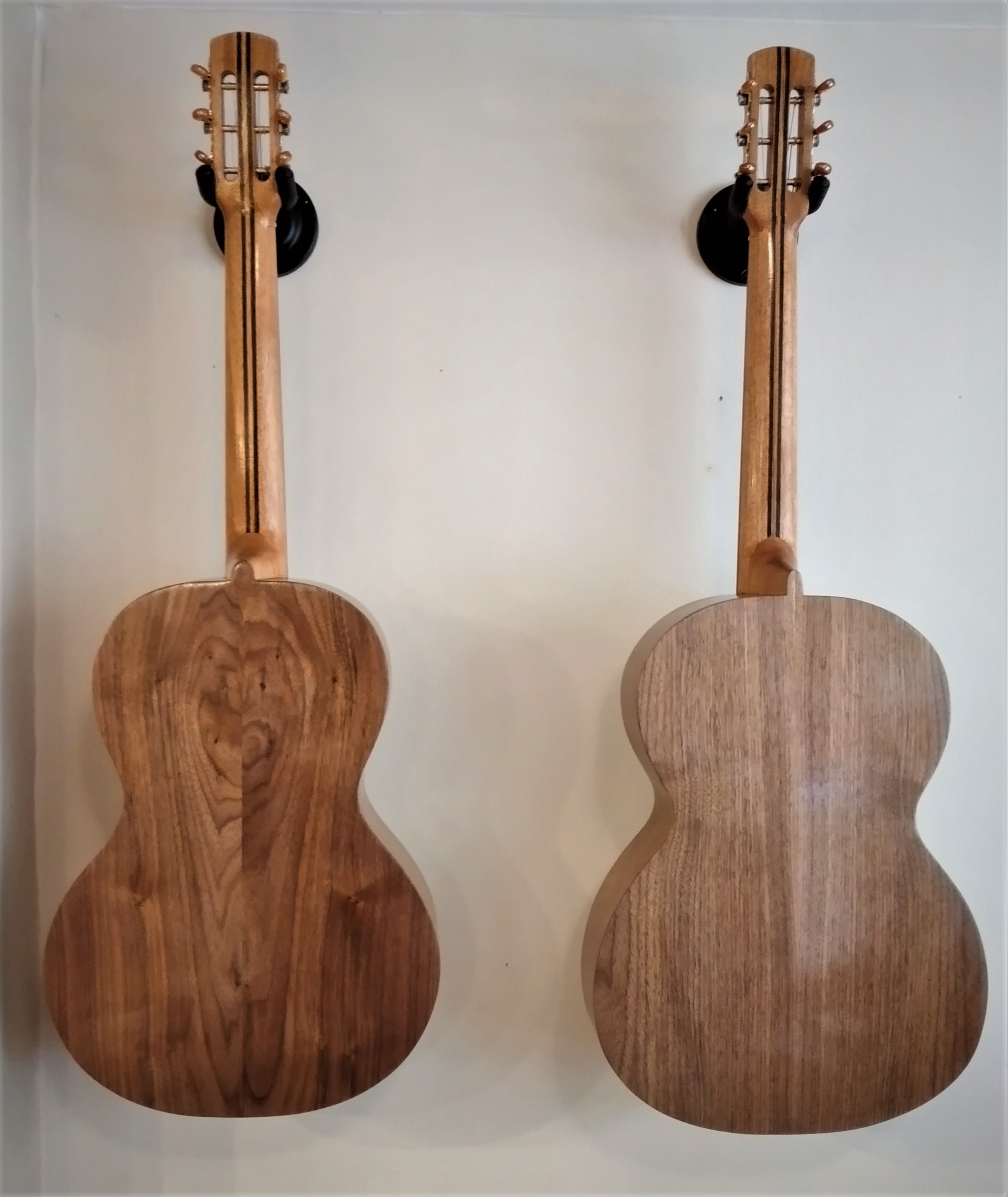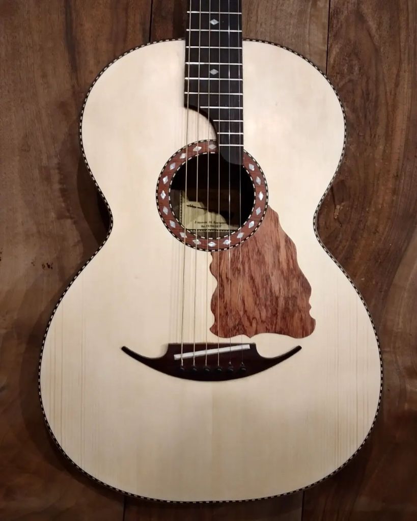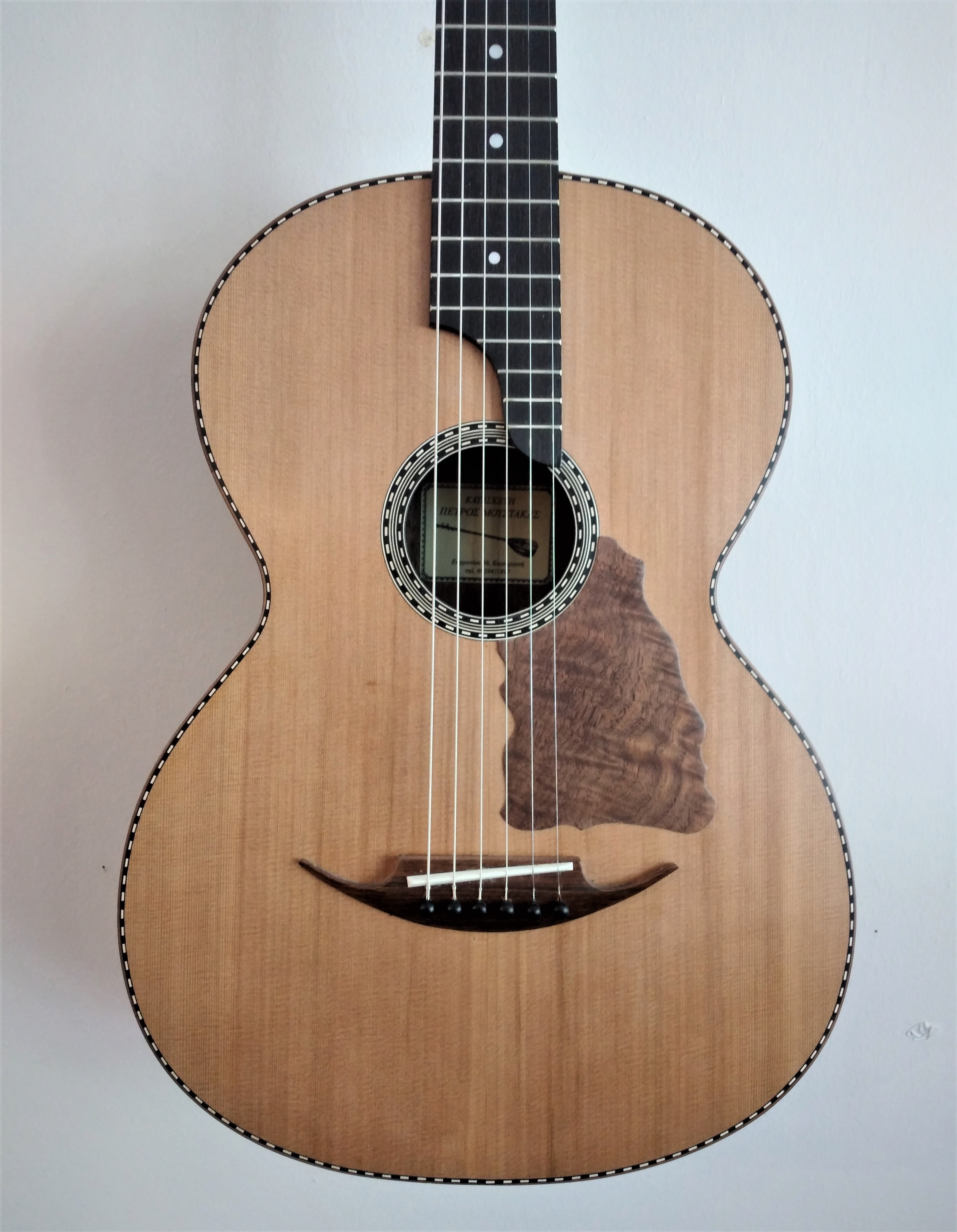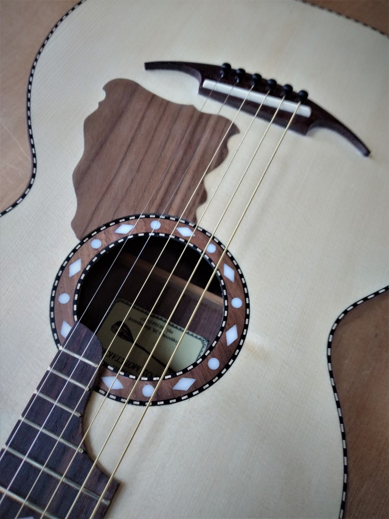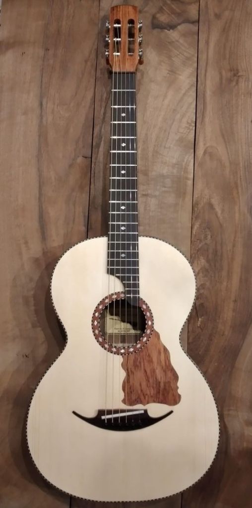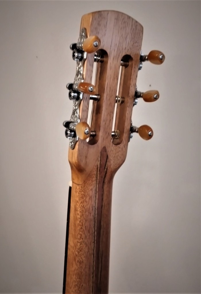 Μήκος χορδής: 63 cm. Σκάφος: καρυδιά, μπράτσο: αφρικανικό μαόνι με κόντρες όβανγκολ, καπάκι: έλατο, ταστιέρα και καβαλάρης: παλίσανδρος.